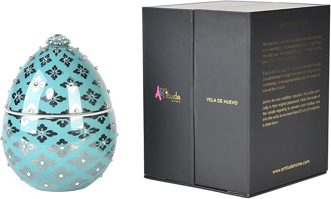 - Exquisite Design: Elevate your space with our Vela De Huego Aqua scented candle, uniquely crafted in the shape of an elegant egg and adorned with shimmering rhinestones.