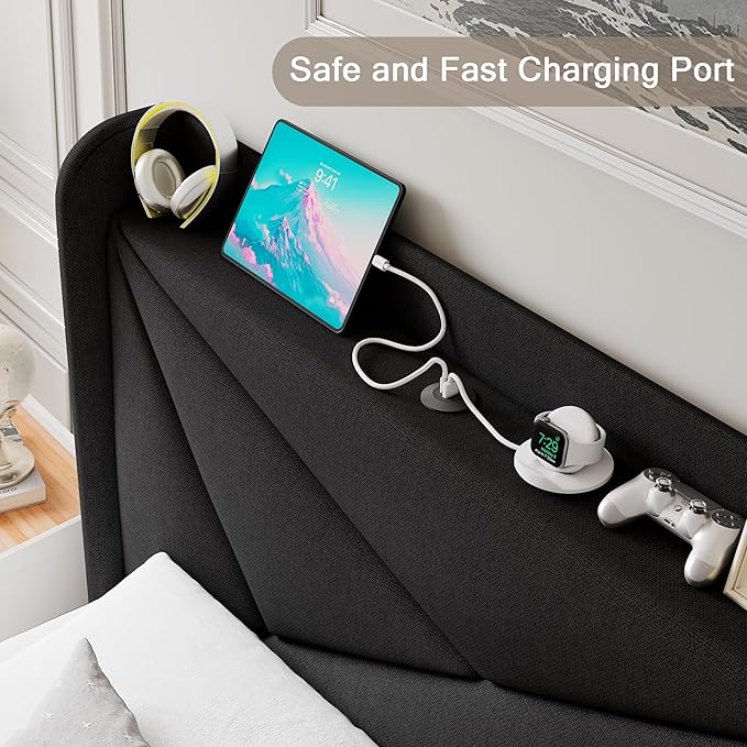 - Special Feature : Elegant Wingback Headboard, Noise-Free, PD Type-C Fast Charging Station, Upgraded Heavy-Duty Structure Elegant Wingback Headboard, Noise-Free, PD Type-C Fast Charging Station, Upgraded Heavy-Duty Structure