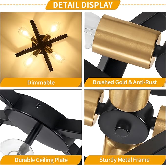 - π 4-LIGHT DIMMABLE CEILING LAMP β With 4-light sockets, this hallway light fixtures ceiling mount allows you to tailor the brightness to suit your desired ambiance. Pair it with dimmable bulbs and a compatible dimmer switch for complete lighting controlβfrom cozy warmth to lively brilliance. Ideal for enhancing settings such as living room light fixture, bedroom light fixture, or even as a laundry room light fixture (bulbs and dimmer switch not included)