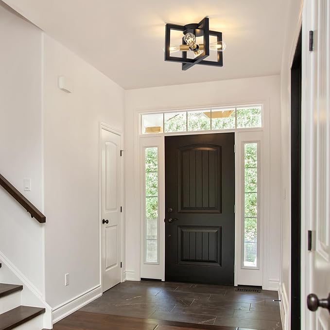 Modern Black and Brushed Gold Semi Flush Mount Ceiling Light, 4-Light Industrial Geometric Light Fixture, Ceiling Lights for Hallway Entryway Laundry Kitchen Dining Room Bedroom Lighting, UL Listed
