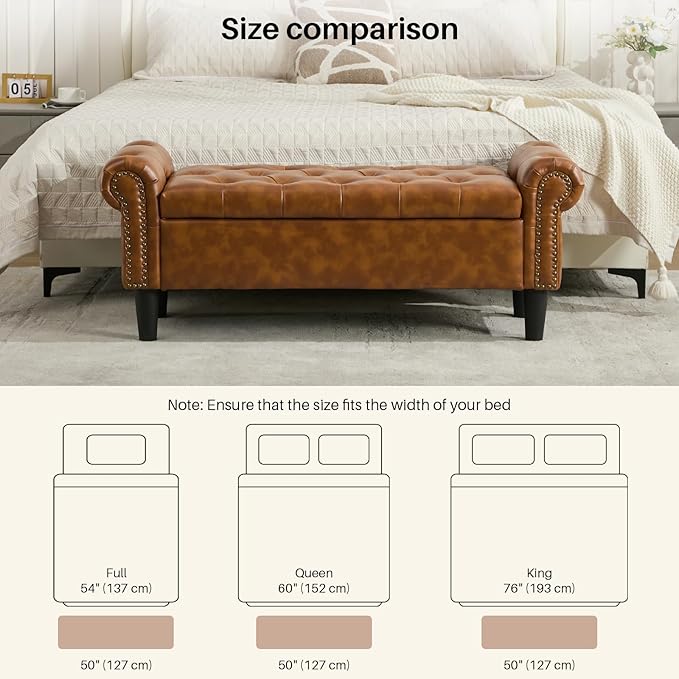 - EASY ASSEMBLY: The This storage bed bench overall size is 49.8" W x 17.7"D x 19.2" H. The cushioned bench is pre-assembled 80% and will come with a manual and installation tools to assemble it, it's simple and convenient