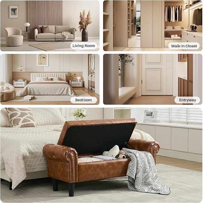 - UNIQUE AND STYLISH DESIGN: The traditional buttoned storage ottoman with nailhead trim adds elegance to your home decor. The modern design and warm color palette contribute to a charming and relaxed style, seamlessly complementing furniture pieces