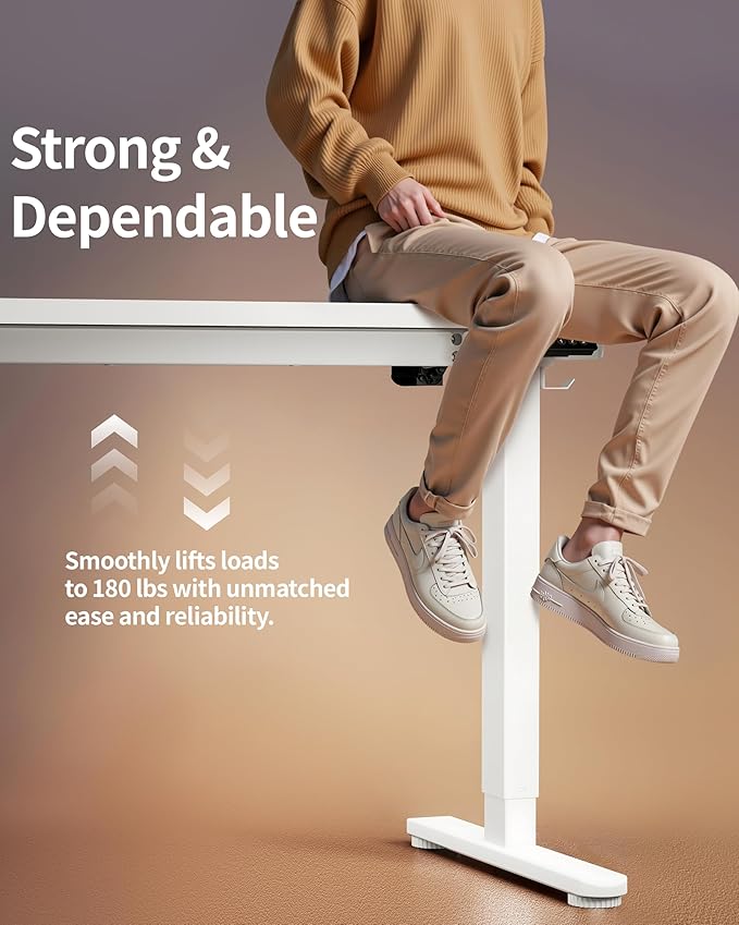 - Stable & Sturdy Design: This electric standing desk boasts a powerful motor that lifts at 0.8" per second and has been rigorously tested 20,000 times. This office desk can securely hold up to 132 lbs of weight. With safety as our priority, this rating reflects a conservative estimate - our real-world testing proves a 180lbs load capacity.