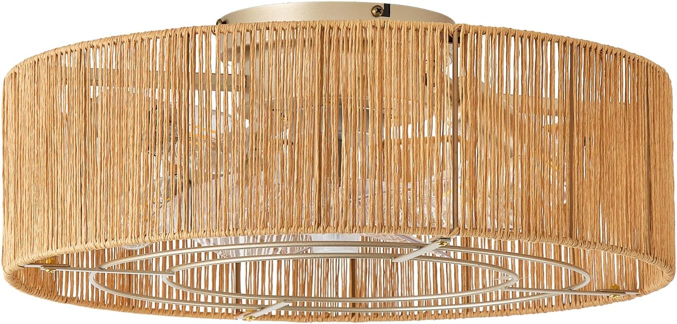 Ceiling Fans with Lights, 20" Boho Ceiling Fan with Light Flush Mount, Rattan Low rofile with 6 Speeds, Remote Control for Bedroom, Nursery, Living Room