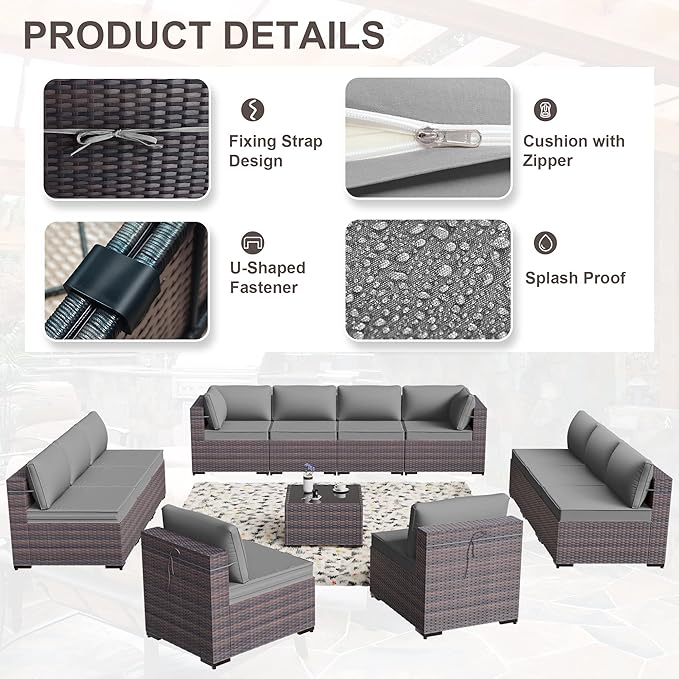 - Assembly and Support: The patio conversation sets come with clear and easy-to-understand instructions and some necessary tools to assemble it quickly and easily. The patio sofa is shipped in 8 boxes from our US warehouse