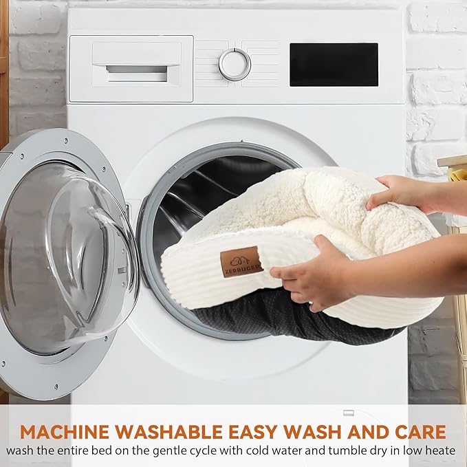 - EASY CARE: Our dog beds are designed to be fully machine washable, allowing you to effortlessly keep them clean and fresh. Simply place the entire bed into the washing machine, select a gentle cycle with cold water, and after washing, tumble dry on low heat. This convenient cleaning process ensures that your pet's bed always remains in top-notch condition, providing a hygienic and cozy resting place for your furry friend.