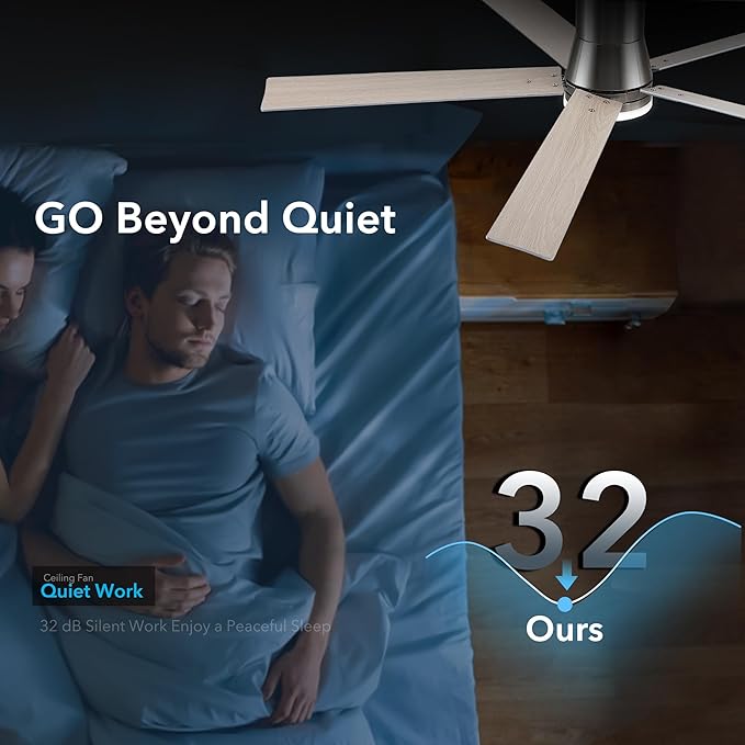 - 【Ultra-Quiet & Powerful DC Motor】The 6-speed reversible DC motor delivers ultra-quiet operation (below 32dB) and powerful airflow (up to 4918 CFM). Perfect for all seasons, it offers cooling airflow in summer and warm air circulation in winter, ensuring year-round comfort.