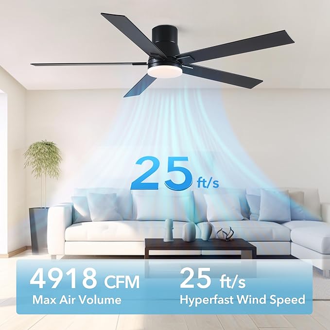 - 【Ultra-Quiet & Powerful DC Motor】The 6-speed reversible DC motor delivers ultra-quiet operation (below 32dB) and powerful airflow (up to 4918 CFM). Perfect for all seasons, it offers cooling airflow in summer and warm air circulation in winter, ensuring year-round comfort.