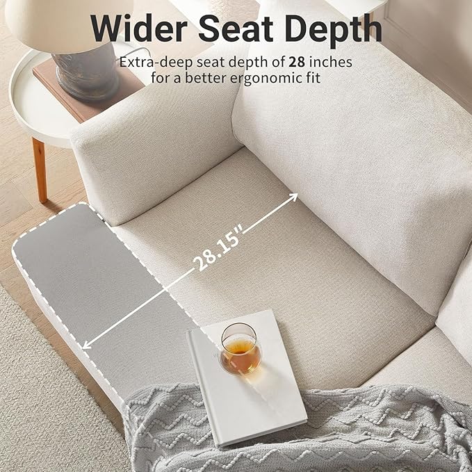 - DURABLE FABRIC. Our two-seater sofa features a linen-like fabric with a special texture, offering an eco-friendly, stain-resistant, and durable solution that is easy to maintain. Its unique blend of durability and aesthetic appeal ensures long-lasting beauty.