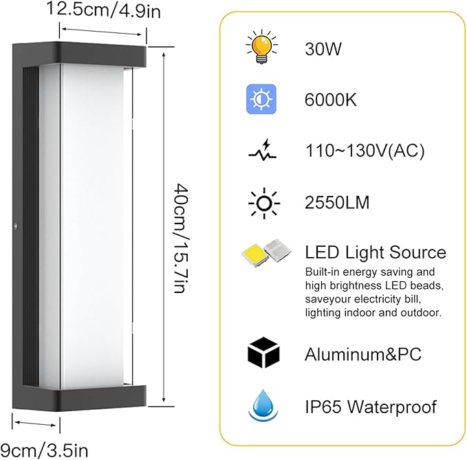 - 【IP65 Waterproof Exterior Light Fixture】The modern porch lights are built with highly efficient LEDs, 30W at 2550lm, replacing 300W old incandescent light. IP65 waterproof and suitable for both outdoor and indoor areas application.