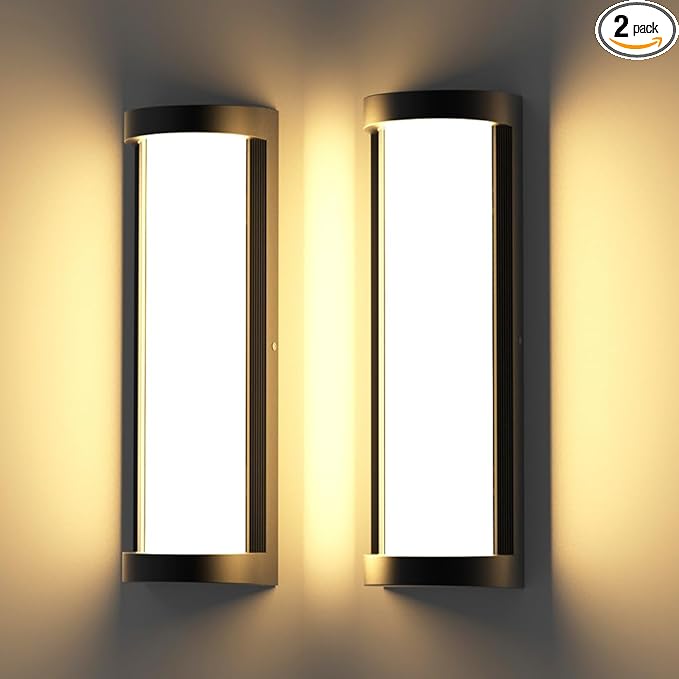 Sytmhoe 2Packs 10%-100% Dimming Exterior Wall Lights,16in Dimmable LED Modern Patio Wall Light Fixture, Black Aluminum&Dual PC Wall Sconce for Garage Bathroom Room Courtyard House(2Packs 3000K)