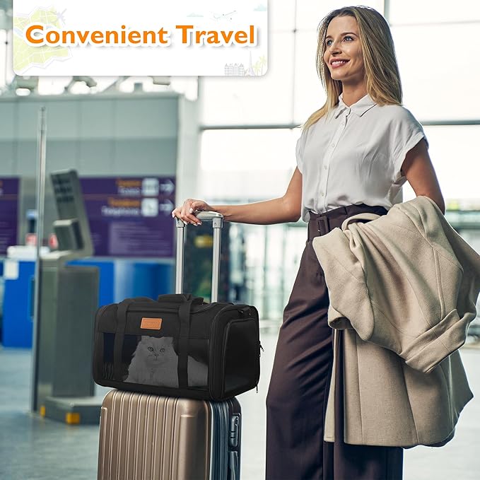PETUX TSA Approved Pet Carrier in Cabin, 17"x11"x9.5" Soft Cat Carriers for Small Cat up to 12 lb, Top-Open Portable and Breathable Pet Carrier Airline Approved for Travel and Vet Visit, Black
