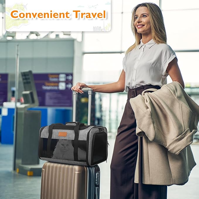 PETUX TSA Approved Pet Carrier in Cabin, 17"x11"x9.5" Soft Cat Carriers for Small Cat up to 12 lb, Top-Open Portable and Breathable Pet Carrier Airline Approved for Travel and Vet Visit, Grey