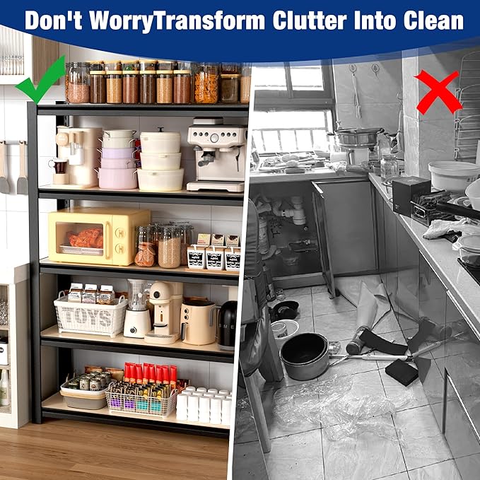 - 【Quick Boltless Assembly】No bolts required—set up this garage shelving in just 10 minutes. Its rolled-edge uprights and protective foot pads ensure easy, safe assembly without hand injuries or floor damage.
