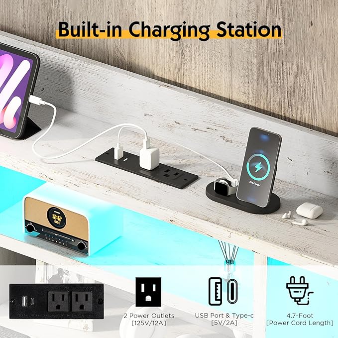 - 【Charging Station】Built-in charging station of the upholstered platform bed is equipped with 2 AC outlets, 1 USB port and 1 Type-c, which is convenient for you to charge phones, tablets and other electronic devices