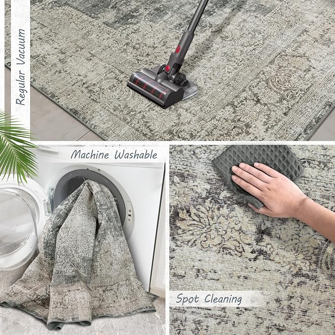 - ❤️[More Soft and Durable] Our washable rugs 8'x10' are made with durable chenille fibers. It will not shed fibers or be inhaled. Exquisite vintage design suitable for a variety of decoration styles. Our machine washable area rugs can bring a classic and ideal color to any place.