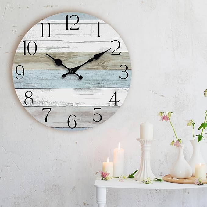 HYLANDA Wall Clock, 12 Inch Wall Clocks Battery Operated Silent Non Ticking, Wooden Clocks Decorative for Kitchen, Bathroom, Bedroom, Living Room Blue