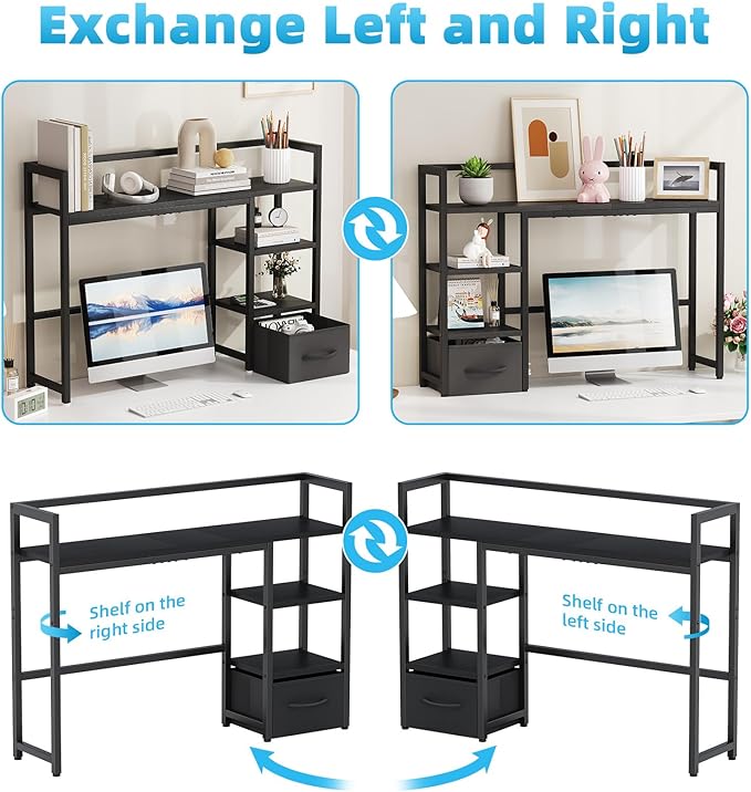 - 【A Powerful Desk Hutch】 This desktop bookshelf features a 4 tier shelf design that maximizes vertical space to provide ample storage space. It features 3 compartments for easy categorization and organization of your items, and also comes with additional fabric drawers at the bottom for storing smaller or personal items, so you can keep your items neatly organized and within reach