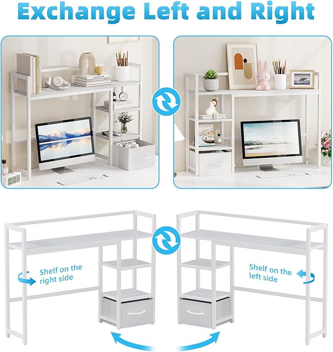 Marbrasse Desk Shelf with Drawer, 40" Desk Hutch for Computer Monitor, Desk Shelf for top of Desk, Wooden Desktop Bookshelf Storage Rack for Home Office Dorm - White