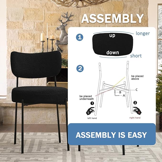 - 【Plush Comfort】These boucle dining chairs are designed for ultimate relaxation, featuring 3.7-inch high-density cushions and soft upholstered seats that provide exceptional comfort for both dining and lounging
