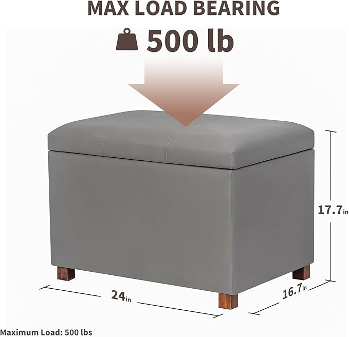 - Versatile Leather Storage Ottoman:Measuring 17" D x 24" W x 17.7" H,Your Go-To Storage Solution.This stylish yet sturdy storage ottoman bench combines premium leather craftsmanship with spacious hidden storage to organize any room.The ottoman with storage is perfect for tucking away living room blankets, storing bedroom pillows, or serving as a comfortable entryway seat - all while maintaining a sophisticated look that elevates your space.