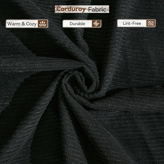 Convertible Sleeper Sofa Bed with Cylindrical Pillow, Corduroy Folding Mattress Couch with Fixed-Shape Frame, Floor Sofa Lounge Couch for Living Room Bedroom Lounge Studio-Black