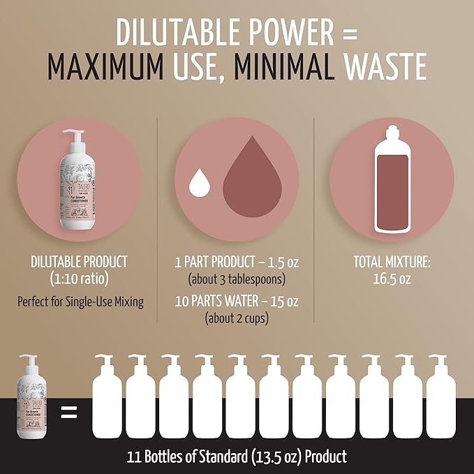 - Perfect Size for Convenient Home Grooming Needs: Comes in a practical 13.5 fl oz bottle, which is dilutable 1:10 and works up to 45 washes for a small dog; is made in the EU; fits effortlessly within your dog essentials and puppy stuff grooming kits; designed for daily use to keep coats healthy, shiny, and vibrant