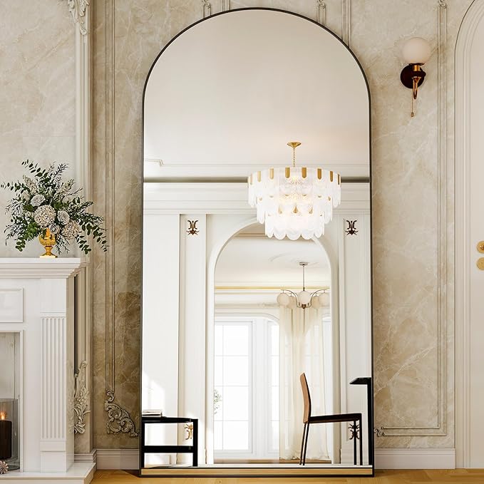 - Elegant Arched Design: This full-length mirror features a stunning arched top, adding a touch of sophistication to any room. Its graceful curves make standing mirror an eye-catching decorative piece that complements various interior styles, from modern to classic