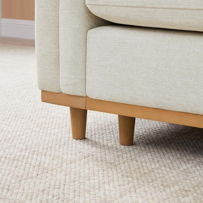 - Solid Wood Plinth Base - The exposed wood frame is made of solid, kiln-dried wood for extra durability. A perfect blend of retro and mid-century modern vibes, this sofa is a welcome addition to any sophisticated home decor. Additionally, the solid wooden high-leg design allows a robot vacuum to easily pass through, keeping the home clean and tidy.