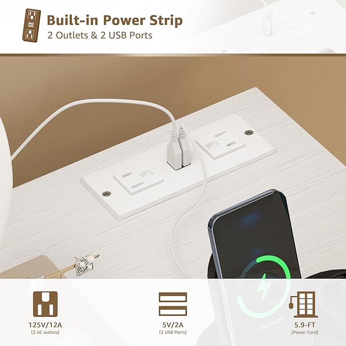- Stay Powered and Connected: Tired of finding a place to charge your phone or beauty tools? With the built-in charging station, includes 2 standard plug sockets and 2 USB ports, you can easily charge multiple devices, keeping your phone, laptop, or hair tools within reach