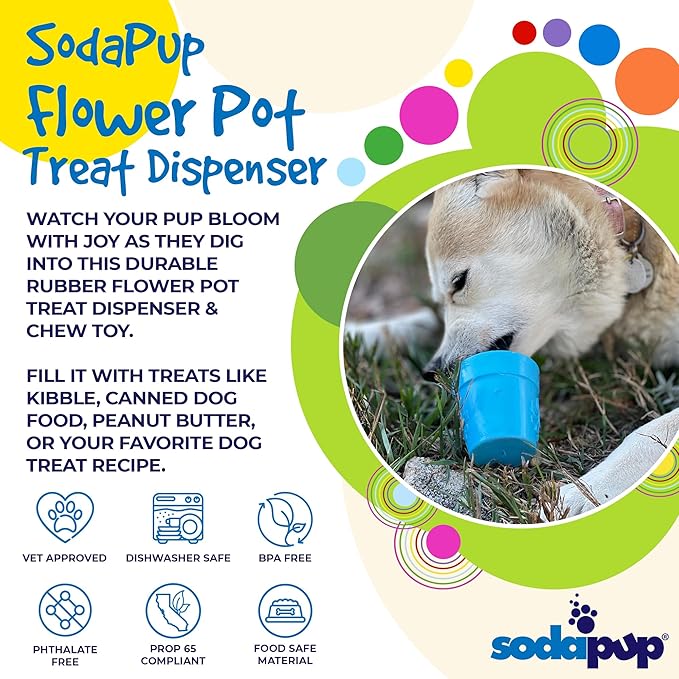 SodaPup Flower Pot – Durable Dog Treat Dispenser & Chew Toy Made in USA from Non-Toxic, Pet Safe, Food Safe Rubber Material for Mental Stimulation, Problem Chewing, Calming Nerves, & More