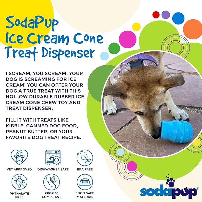 SodaPup Ice Cream Cone – Durable Dog Treat Dispenser & Chew Toy Made in USA from Non-Toxic, Pet Safe, Food Safe Natural Rubber Material for Mental Stimulation, Problem Chewing, Calming Nerves, & More