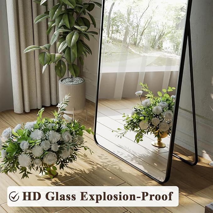 - High Definition Glass : This full-length mirror is assembled with high-definition, highly transparent, and explosion-proof float glass, ensuring robust durability. With multiple layers of protection, it boasts a longer lifespan compared to ordinary mirror surfaces