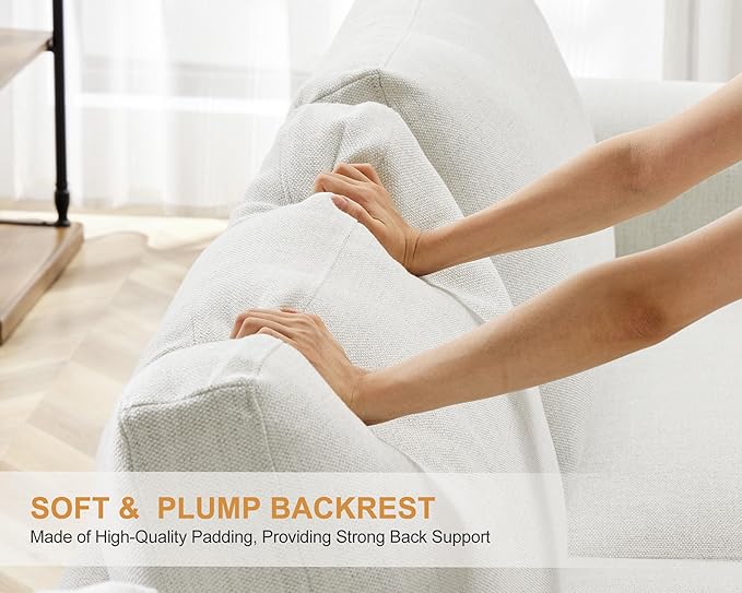 ABCASA L Shaped Sofa Couch with Wide Armrest for Living Room,Removable Cushion Cover, Modern Premium Linen 3 Seater Sofas for Small Space, Office, Apartment, Ivory