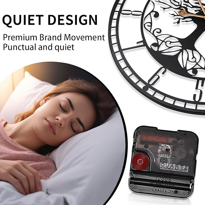 Tree of Life Wall Clock, 24inch Black Metal Wall Clock, Silent Quartz Movement, Modern Home Decor