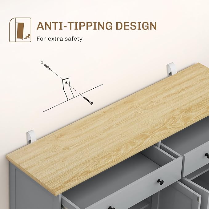 - Thoughtful Workmanship: Made of a quality engineered wood frame, our sideboard storage cabinet is fit for daily use and is easy to maintain. An anti-tipping design on the back of the cabinet stops it from falling over.