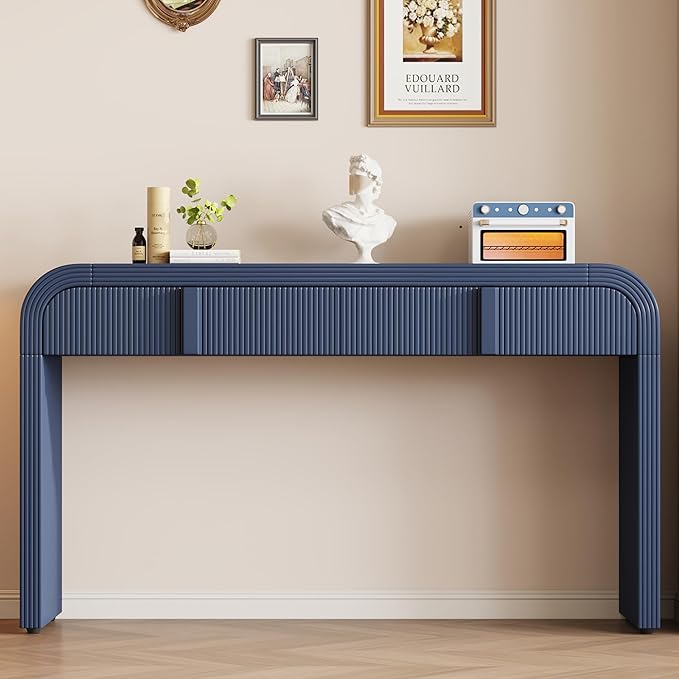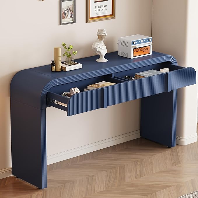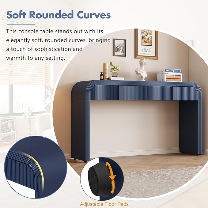 Modern Curved Entryway Console Table 55-Inch Entry Sofa Table with Storage Drawers for Living Room Entrance Hallway Accent Furniture (Navy Blue)