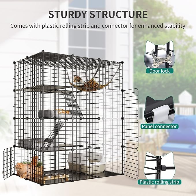- DIY Layout: Flexibly assemble this cat cage with the abundant panels provided; Tailor make your very own cat apartment or decent cat cage that meets your aesthetic, shape, or size needs and acts as a safe haven for your furry friends.