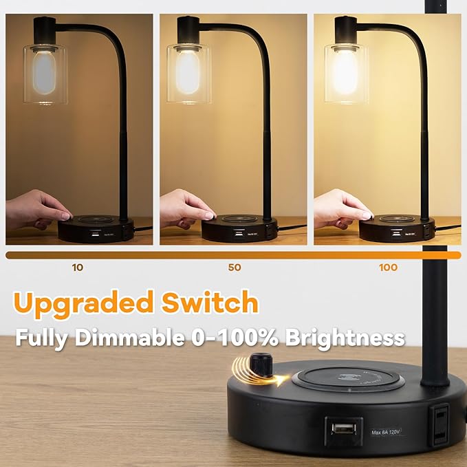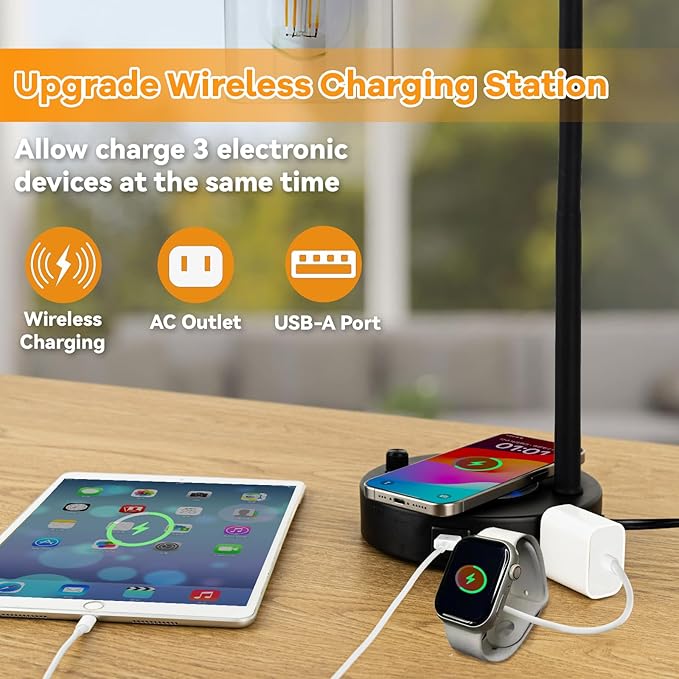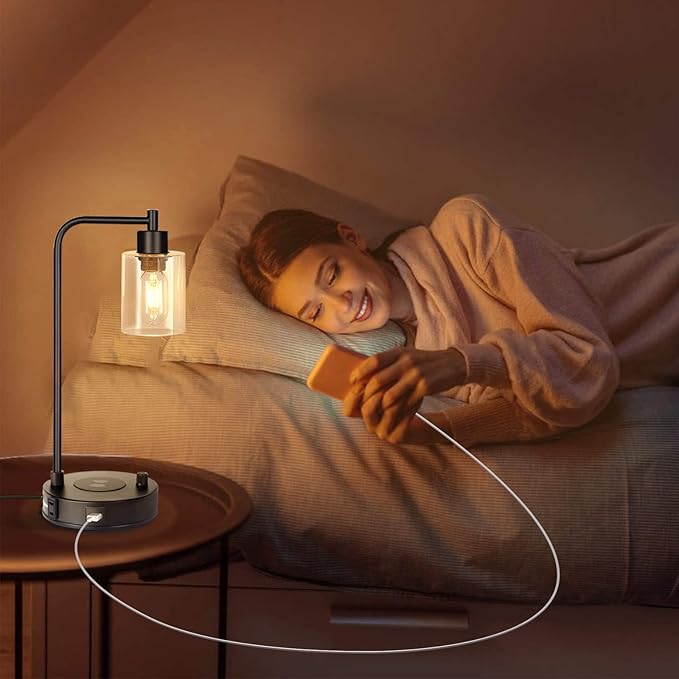 - 【Industrial Table Lamps with Wireless Charging】Upgrade your space with industrial table lamps featuring wireless charging, USB ports, and a 2-prong AC outlet. Charge iPhone and Android devices effortlessly—just remove your phone case, place it on the pad, and power up. Stylish, functional, and clutter-free. Say goodbye to cable clutter and hello to streamlined, industrial-style functionality.