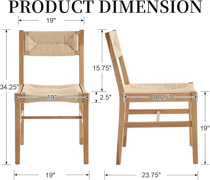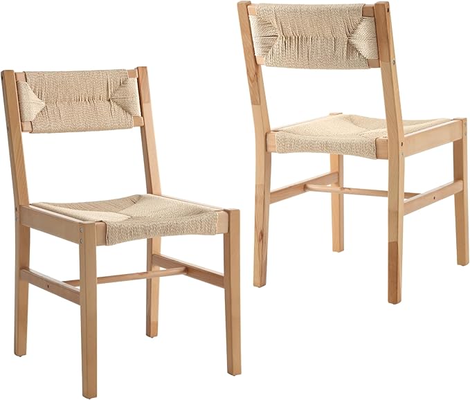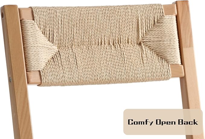 Modern Rattan Dining Chairs Set of 4, Boho Cane Farmhouse Chair, Natural Wood Legs Dining Chairs with Open Back, Armless with Natural Weave 2.5 Inches Seat Kitchen Chairs for Living Room