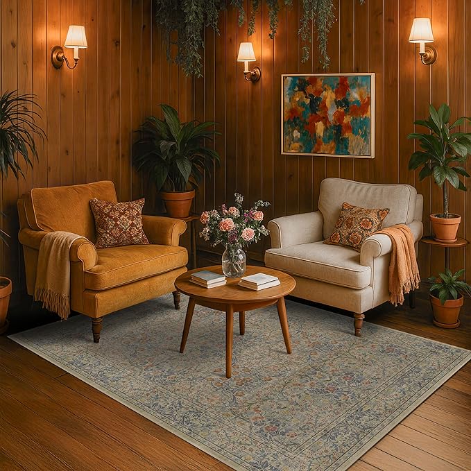 - Vintage Botanical Elegance: Echoing the refined artistry of 19th-century textile traditions, this area rug showcases a graceful botanical design brimming with timeless charm. Soft pastel blues, lilacs, peach, and dusty rose bloom across the surface in delicately balanced symmetry, forming a serene floral tapestry. Inspired by Victorian-era aesthetics, the rug’s intricate vines and oriental motifs evoke a fresh, spring-like feel, infusing your home with elegance, lightness, and vintage sophistication