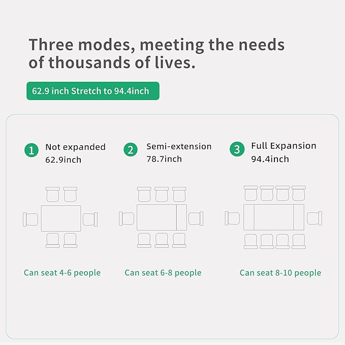 - 【 Product Dimensions】: The table measures 35.4 inches deep x 62.9 inches wide x 29.5 inches high when not extended, and expands up to 94.4 inches wide. It adapts to various scenarios, and comes with a 3-year quality guarantee, ensuring peace of mind with every purchase.
