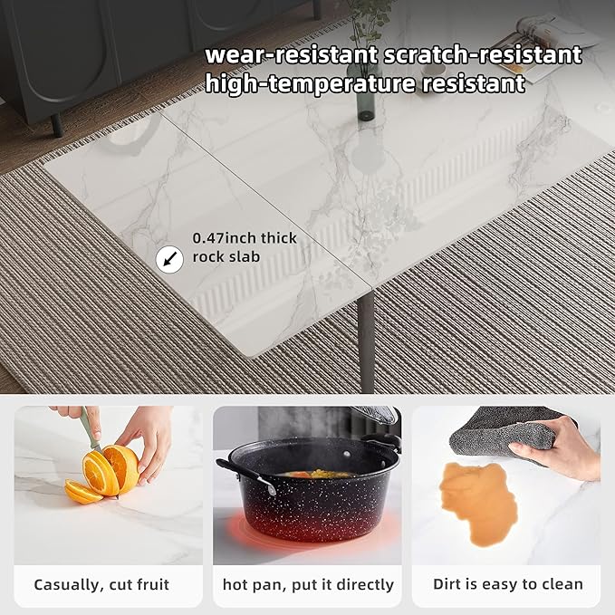 - 【 Premium Tabletop Material】: The tabletop is made from high-pressure sintered stone fired at 1200°C, offering excellent load-bearing capacity and flexibility. It boasts high hardness (Mohs scale 9), resistance to corrosion, scratches, wear, and high temperatures. Cleaning is easy, and the surface remains scratch-free even when cutting food directly on it.