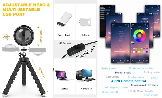 - 【Portable size】The lamp tripod can be rotated and adjusted.The Sunset Lamp head can be rotated 360 degrees, By changing the rotation angle and distance of the illuminator, different circular lights can be emitted from different angles, thereby bringing different effects. The farther the distance is, the larger the projection projected on the wall or ceiling.