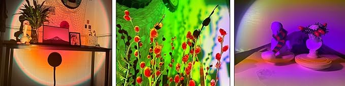 - 【Night Light-16 Colors Sunset Light & 4 Flashing Modes】The sunset lamp projector build-in RGB led, 16 kinds of light effect and 4 dynamic modes(Flash/Strobe/Fade/Smooth Effect) to choose from, provides a comfortable and romantic atmosphere. There are so many choice, you would find one you like.Suitable for children's rooms, bedrooms, creating a different sunset projector light atmosphere, let you enjoy your leisure time and your family.