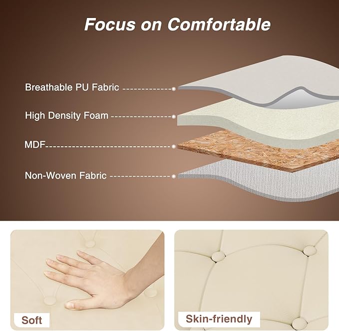 - Mid Century Retro Design: Our bed benche feature unique rolled armrests and rivet trim, tufted buttons on the seat surface and diamond shaped stitching, which keeps the surface leather tightly fitted to the interior foam and not easily deformed