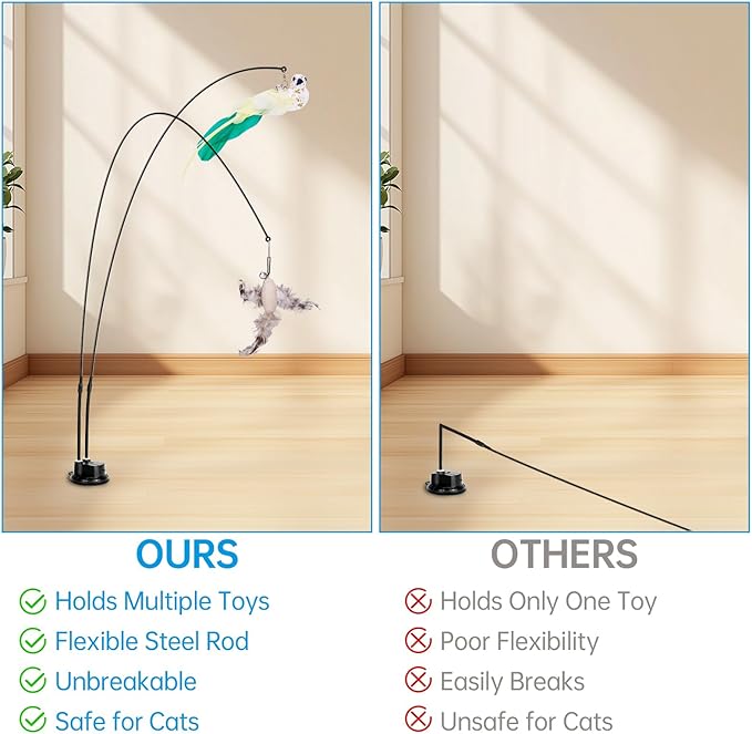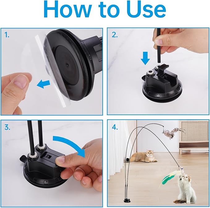 - Intimate Interaction: The two-bar sucker cat toy can be disassembled into a cat teasing stick to interact with cats and enhance their intimacy. When you are busy with work, stick indoor cat toys on the floor or glass and let your kitten play by itself. The interactive cat toy set is also equipped with door hanging accessories, and the cat rope toy can be used as a cat door toy to provide daily entertainment for bored cats. Indoor interactive cat toys are designed to keep your furry friends close and intimate.