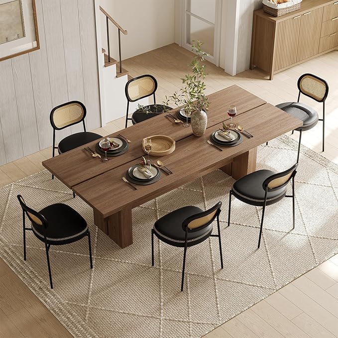 - š·[MID-CENTURY MODERN STYLE]: This rattan back dining chair set incorporates a mid-century modern aesthetic with an elegant curved backrest making it a bright addition to your dining room decor. It is not only a comfortable dining chair, but also an ideal choice for decorating your kitchen and dining room. both classic and modern look is suitable for many occasions, such as dining room, kitchen, bedroom, balcony, courtyard, waiting room, vanity table, canteen, and cafes etc.
