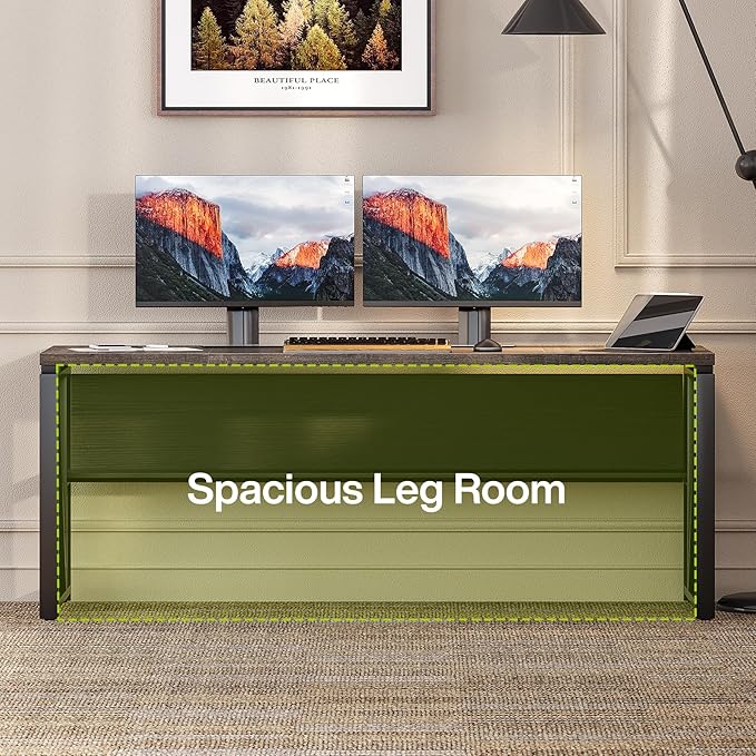 - Spacious Space: Our large 63-inch home office desk offers vast surface space, measuring 63”W x 31.5"D, Get the room you need to comfortably work with multiple monitors and to spread out documents. Let your desktop say goodbye to clutter and become tidy