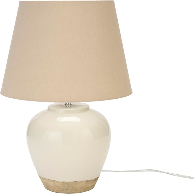 Nourison Home 20" White/Sand Farmhouse Ceramic Pot Table Lamp for Bedroom, Living Room, Console, Entryway